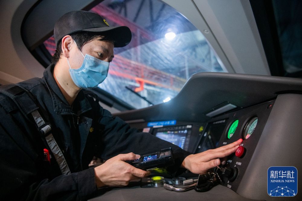 1月6日,地勤机械师在测试动车组列车司机室设备。新华社记者 伍志尊 摄
