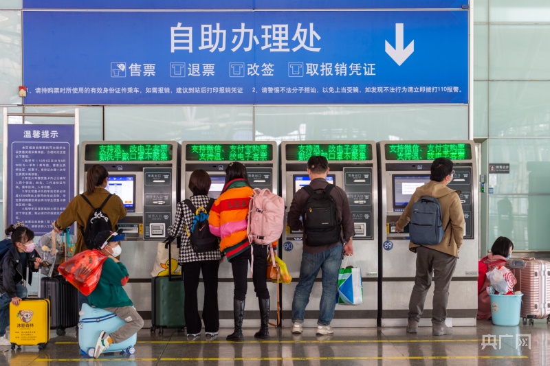图为旅客在广州火车南站自助办理乘车手续(央广网记者 黄璐璐 摄)