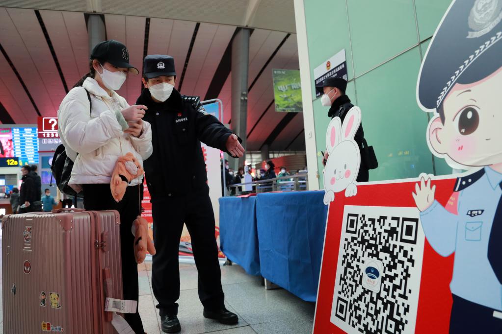 1月7日是2023年春运首日。公安部铁路公安局在全国各大火车站推出了“安全出行”二维码,旅客通过扫码关注就能及时了解安全出行注意事项。