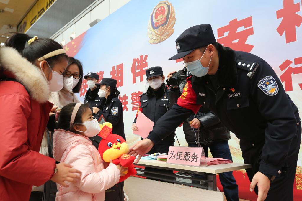 除了普及安全出行常识外,北京铁路警方还向返乡过年的旅客们赠送了新年礼物,旅客们在提升安全意识的同时,也感受到了旅途中浓浓的“年味”。(新华社 记者熊丰)
