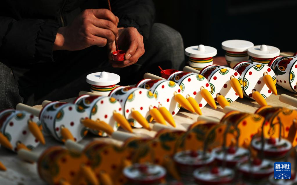 春节临近,山东省临沂市郯城县的木旋玩具民间艺人忙着赶制各式木旋玩具,供应年集市场。郯城木旋玩具俗称“耍货”,富有浓郁的鲁南乡土气息,于2014年入选第四批国家级非遗名录。