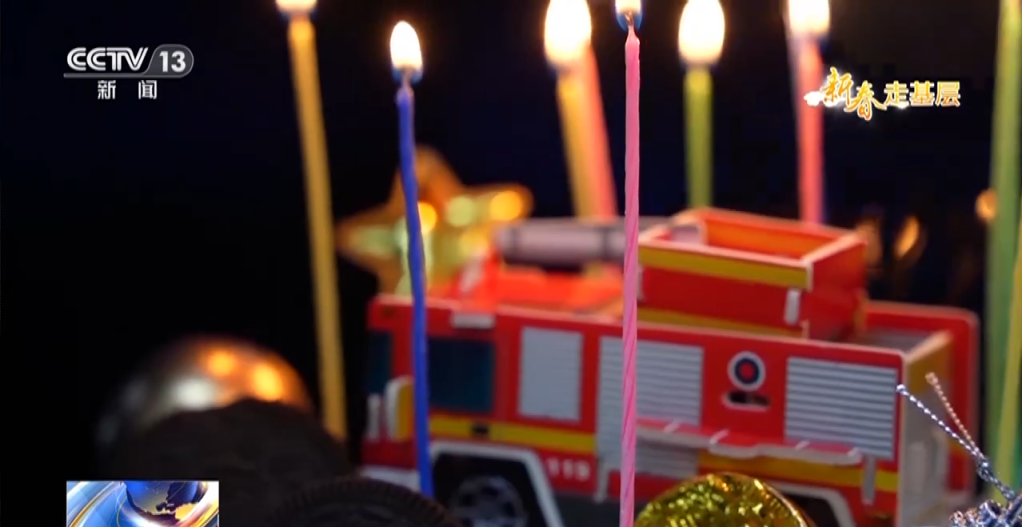 这天,恰逢队员许世龙23岁的生日,队里为他准备了一个带消防车的生日蛋糕。
