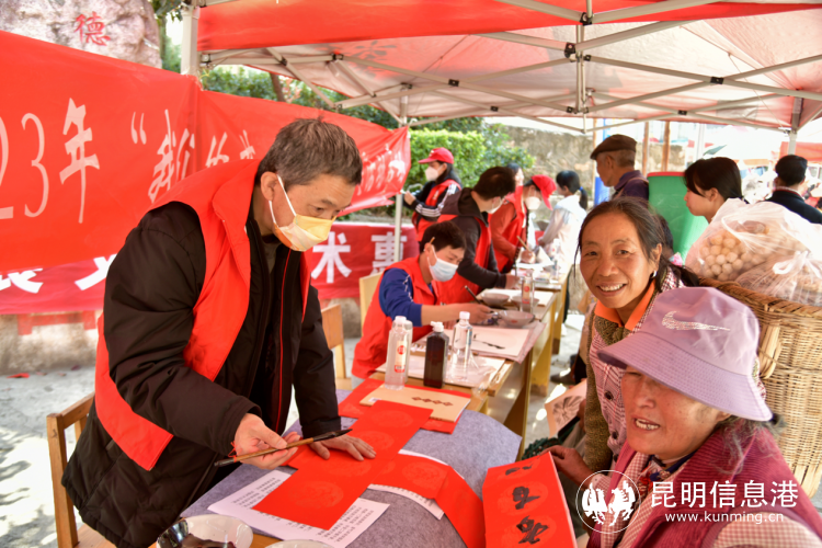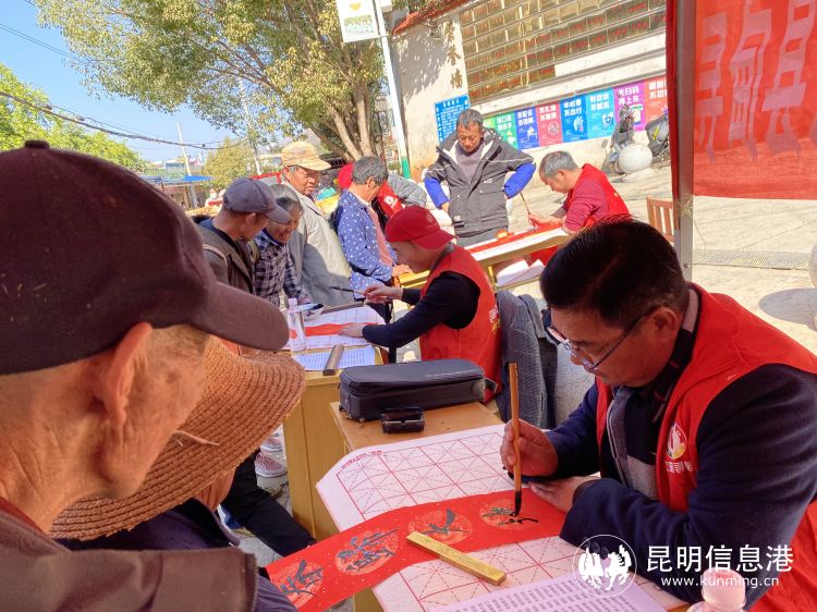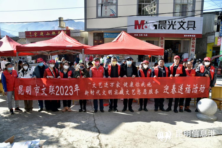 昆明信息港讯 记者王奕然 1月8日,昆明市文联2023年“文艺进万家 健康你我他”迎春送福活动在寻甸县金源乡开展,本次活动由昆明市文联主办,寻甸县文联、金源乡文化站协办。活动旨在深入学习贯彻党的二十大精神和习近平新时代中国特色社会主义思想,引导广大文艺工作者面向基层、服务群众,以文艺的形式弘扬传统文化自信,提升人民群众的文化获得感、幸福感。