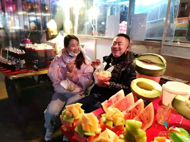 喀什居民在夜市品尝甘甜的瓜果。霍然/摄