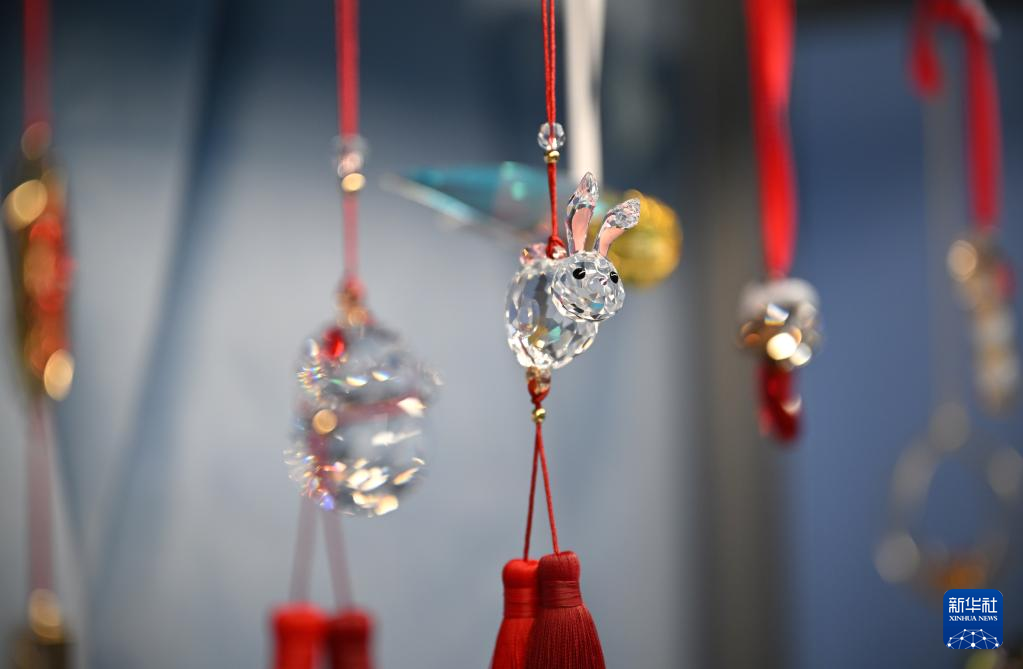 在海口国际免税城拍摄的一款兔年主题挂饰(1月8日摄)。新华社记者郭程摄