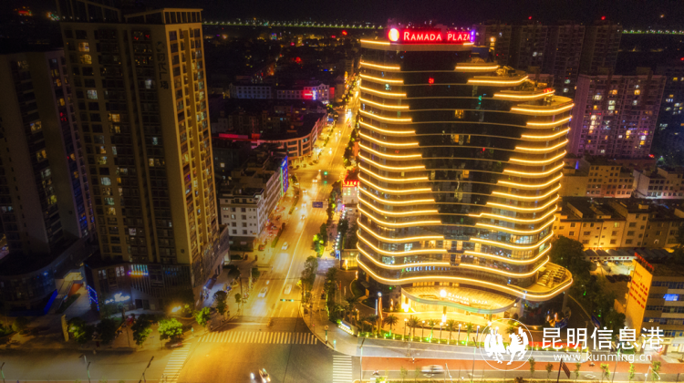 昆明信息港讯 记者戴兴 抚仙湖华美达广场酒店坐落于依山傍海的城市澄江市,酒店毗邻市中心主干“樱花大道”,距离汽车客运站、医院、超市仅10分钟路程。夜晚的灯光,照亮了整座酒店,四周的椰树像是守护者一般高耸在旁边,像是海边的风,沙滩上的城堡,把抚仙湖的风景元素完全融入酒店之中,而且每间客房都有落地玻璃窗,住在这里的每一晚都有迷人的夜景伴人入眠,想想都是幸福的。