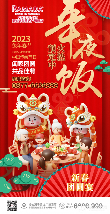据酒店总经理陈忠红女士介绍,抚仙湖华美达广场酒店推出“年味”主题年夜饭活动,除了餐厅装饰格调优雅外,酒店为您创意烹制年夜饭让食物承载从味蕾到团圆情感的传递。团圆饭要传统,也要精致,由酒店星级厨师团队匠心烹制,无论选材搭配还是贴心的服务,皆蕴涵着对新年的美好寓意,甄选食材精心烹饪,无疑是舌尖与心尖的双重享受,让您留下美好难忘的回忆。