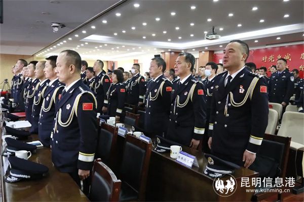 上午8时,随着《中国人民警察警歌》响起,警旗冉冉升起,全体参加人员注目敬礼、高唱警歌,全体民警高举右手庄严宣誓。随后全体人员共同观看警察节宣传片《岁月里的嵩明公安》,一处处意义非凡的公安印记,一段段难以忘怀的从警回忆,一个个感人至深的公安故事,带领大家回忆了几代嵩明公安人的奋斗历程。