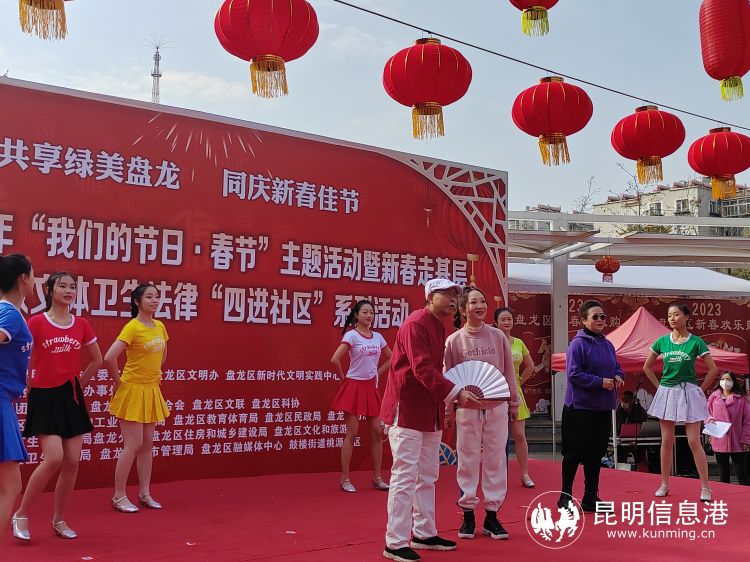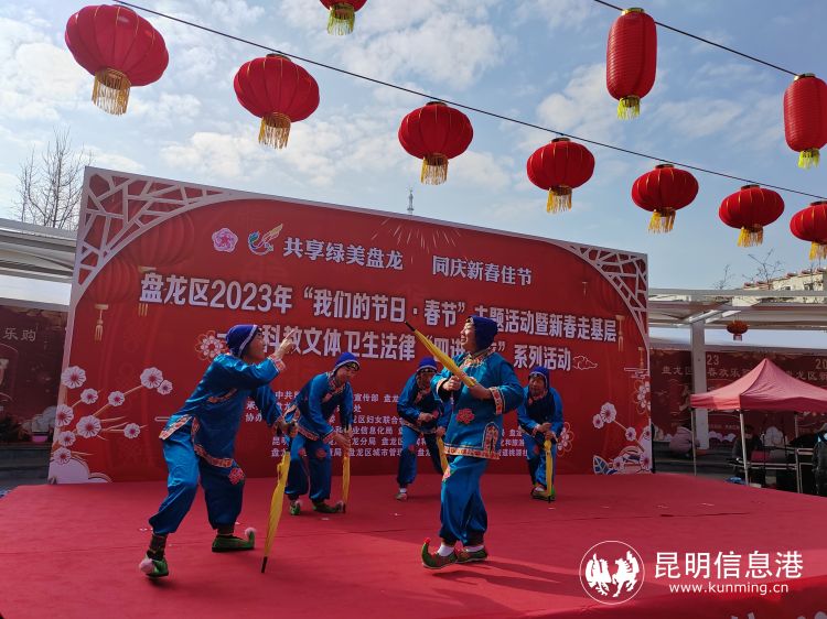 活动现场,盘龙区属各部门为广大市民朋友们带来了文化、科普、法律咨询、健身、义诊等各类志愿服务,并带来了民俗社火表演《欢聚一堂迎新春》、相声《沐浴春风盘龙明天更美好》、反串花灯歌舞《美丽大脚》、昆明扬琴(曲剧)表演唱《老城新貌》,及戏曲舞蹈女声独唱,一场又一场新春文化盛宴,把浓浓的年味、深深的祝福送到百姓身边,营造了热闹温馨的春节气氛。