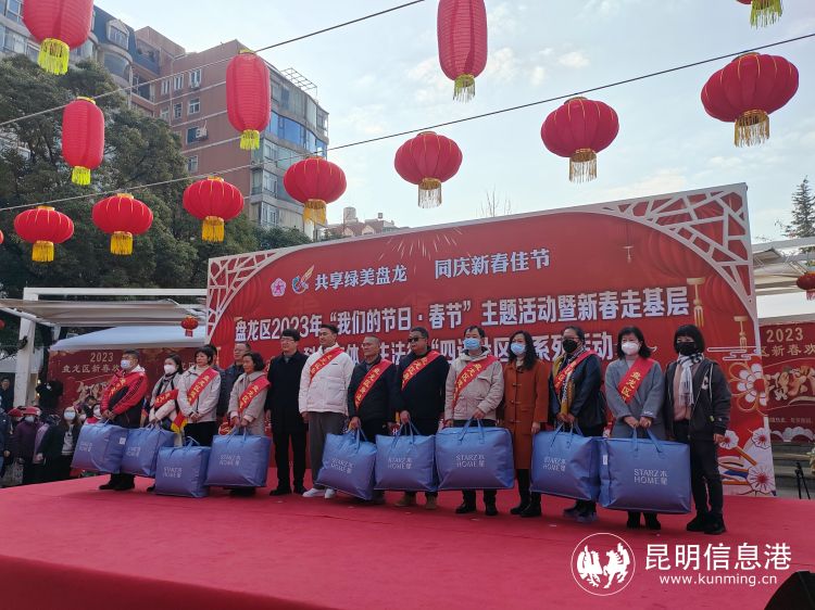 昆明信息港讯 记者李红鸾 在2023新春佳节即将到来之际,为积极营造团结、祥和、欢乐、喜庆的节日文化氛围,弘扬优秀传统文化,盘龙区开展2023年“我们的节日·春节”暨新春走基层主题活动,向广大市民民百姓送上新春佳节最诚挚的祝福。
