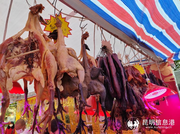 在活动现场,商户们摆开对联、彩灯、鸡、鸭、鹅、糖果等各色年货商摊,将浓浓的年味打造得隆重而多彩。市民们开始涌上街头,纷纷购买年货。