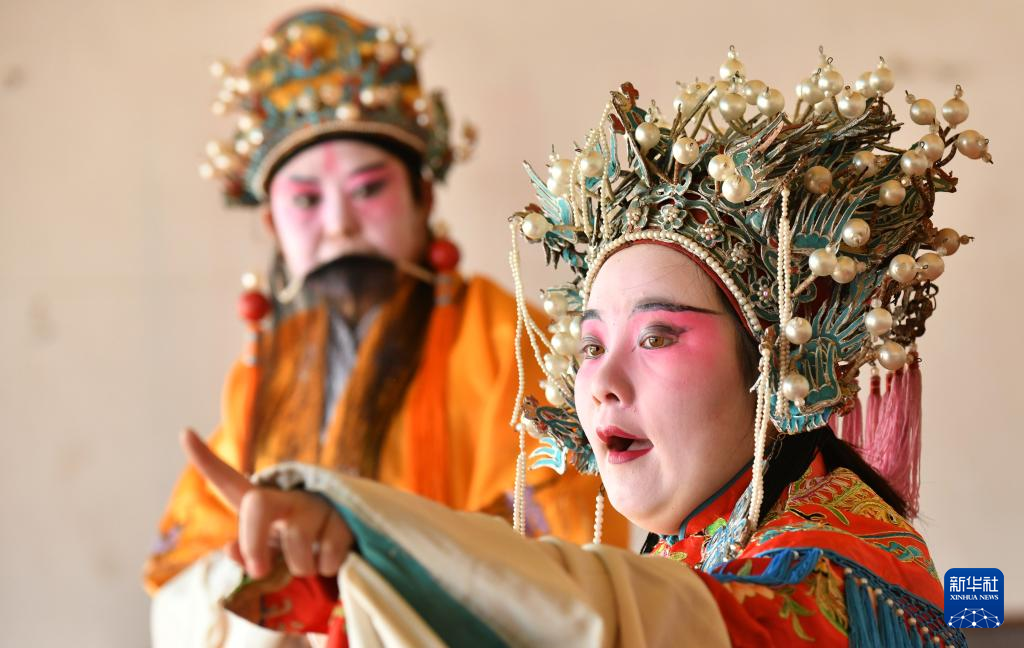 1月10日,在任丘市梁召镇东江村,东江老调演员在排练。新华社发(苑立伟/摄)