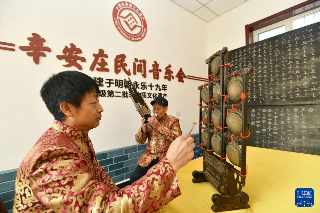 河北省任丘市梁召镇拥有国家级非遗项目冀中笙管乐——辛安庄民间音乐会,省级非遗项目东江音乐会和东江老调,另有沧州市级和任丘市级非遗项目13项,23个行政村中有15个村子都有各具特色的非遗项目。春节临近,民间艺人加紧排练,为春节期间的演出做好准备。