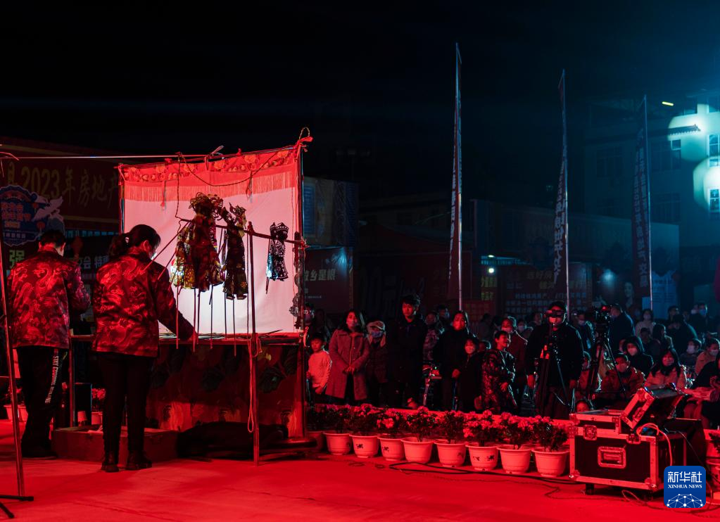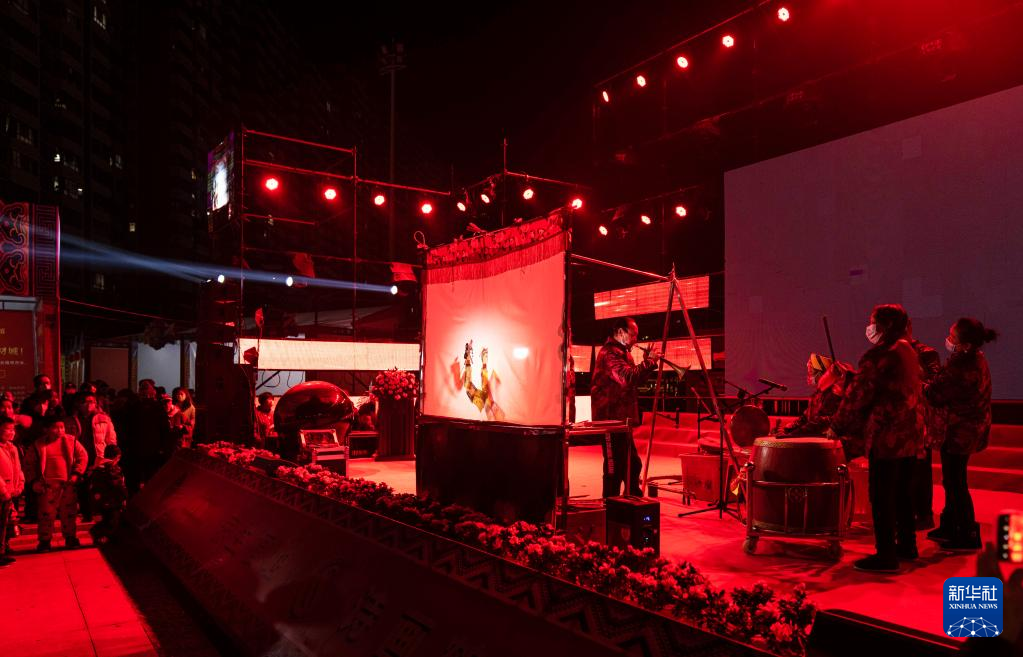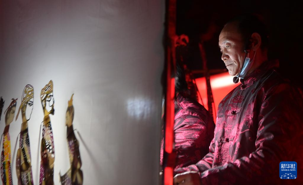1月10日,在湖北省恩施土家族苗族自治州鹤峰县城,艺人在表演非遗皮影戏。新华社发(覃涛/摄)