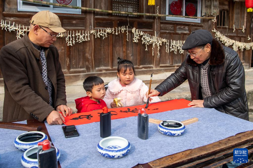 1月11日在“山村喜事多”活动上拍摄的书写春联活动。新华社记者唐奕/摄