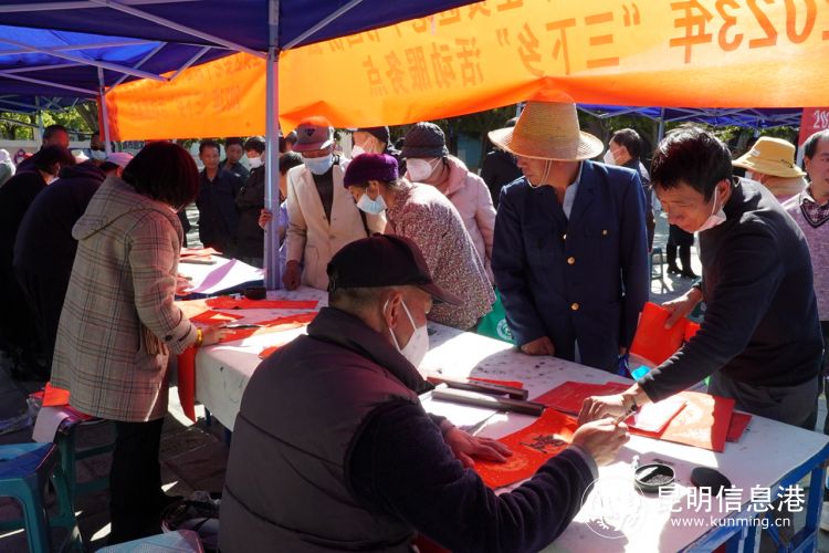 “医生,我的血压高不高呢?”“我吃的药感觉没有效果,该怎么办?”现场,在服务台前,群众争相求医问诊,医生们耐心解答并现场开出处方。另一侧,书法家们摆上桌椅、铺开纸张、倒上墨汁,现场挥毫、激情抒写。“我今天领到了书法老师现场写的‘福’字和春联,希望自己在新的一年能有新的进步。”来自呈贡一小的学生说。