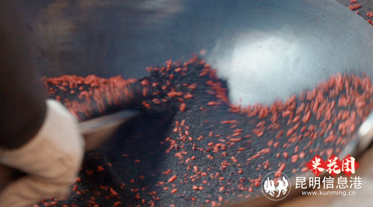 一个米花看着简简单单,却工序繁琐:从选米、淘米、泡米、上色、晒米、炒米、拌米到成型,十多道工序。炒米花用古老的碳火、特制的铁锅、滇池边的海砂,一切都还是几十年前的工艺。传统的制作工艺虽然耗时,但更能保留原汁原味。
