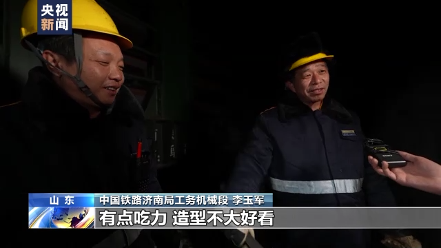 中国铁路济南局工务机械段 李玉军:有点吃力,造型不大好看。咬牙切齿地使了点劲给干好了,因为就怕没到目的地钢轨出现了窜动,在路上就没法处理了。