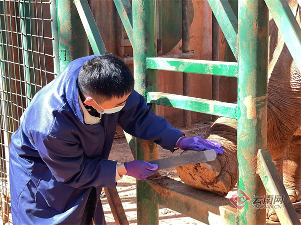 来昆明动物园和亚洲象一起过春节 据介绍,亚洲象是陆地最大哺乳动物之一,足底和趾甲不仅要支撑庞大身体,还发挥着感知、探查地面情况的重要作用。亚洲象蹄甲结构特殊,指甲是往下生长的,厚厚的肉垫弹性十足,整个蹄甲就像我们握着一个弹力球,但是,如果指甲不及时修整,长度超过肉垫支撑范围,整个身体重量就会落在指甲上,那不仅是一件非常痛苦的事情,而且还会导致一系列的蹄甲问题,甚至危及生命。