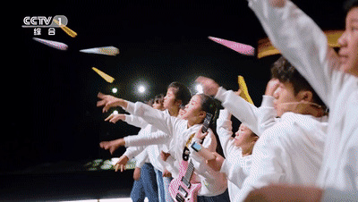 一曲结束,他们在结尾设置了一个“扔纸飞机”的环节:孩子们向观众席投掷各种颜色的纸飞机,观众们也以纸飞机回应。