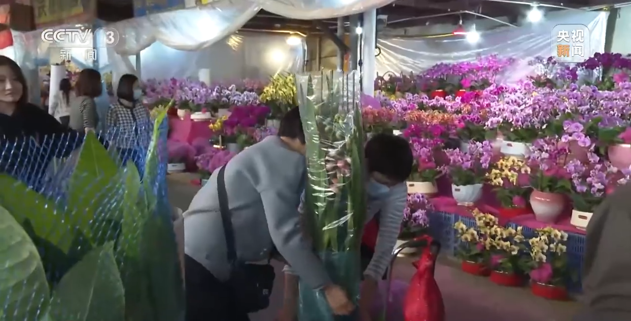 前两年,传统大型花市取消后,花贩们压力颇大,当地政府便将大型花市分散成社区摊档,并开辟了线上售卖方式,以缓解从业者的燃眉之急。今年大型花市恢复后,广州市农业农村局预测,春节期间将上市约1500万盆拈花,同比增长约18%。越秀、天河等多个以零售为主的大型花市也将在下周开放,年节气氛将持续升温到除夕当晚。
