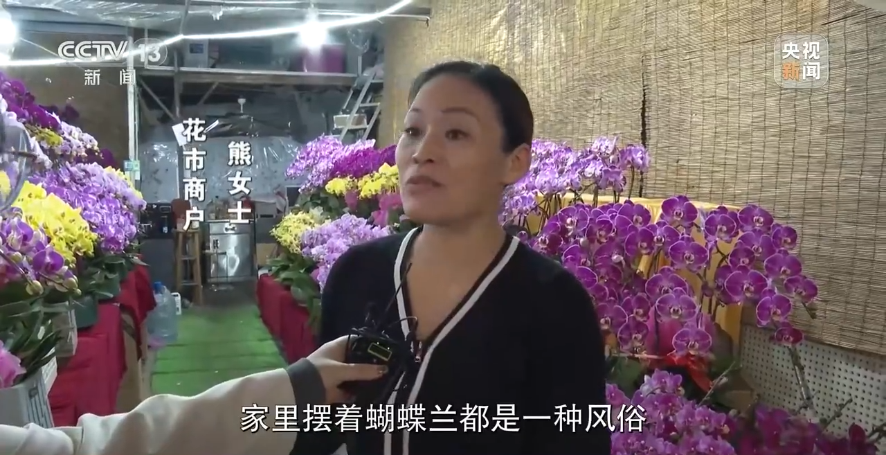 花市商户 熊女士:过年的时候,像广州的话家里摆着蝴蝶兰都是一种风俗,花开富贵。