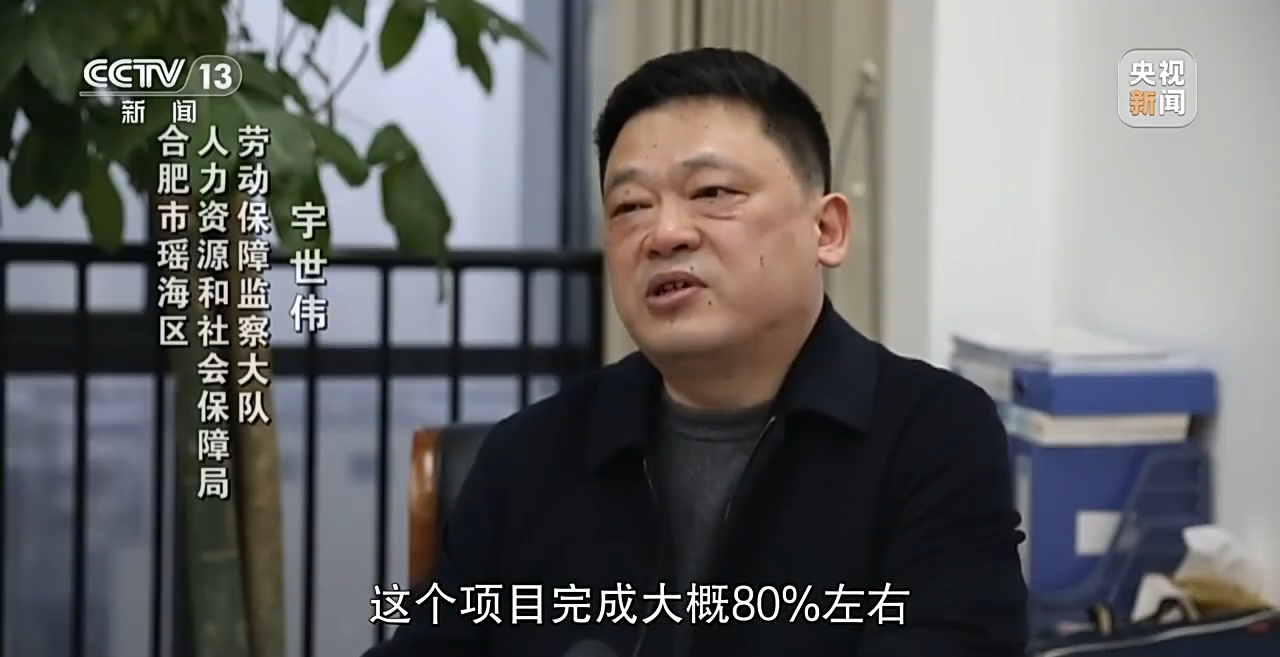 合肥市瑶海区人力资源和社会保障局劳动保障监察大队 宇世伟:这个项目完成大概80%左右,(合肥)国鑫公司就因为工程质量原因被(合肥)三建给清退了。它作为分包单位,对清退的处理意见是十分不满的,要求没有完成的工程量,要计入工程款中,这个在法理上是行不通的,合肥国鑫公司不愿意与总包完成结算,不完成农民工工资额的申报。