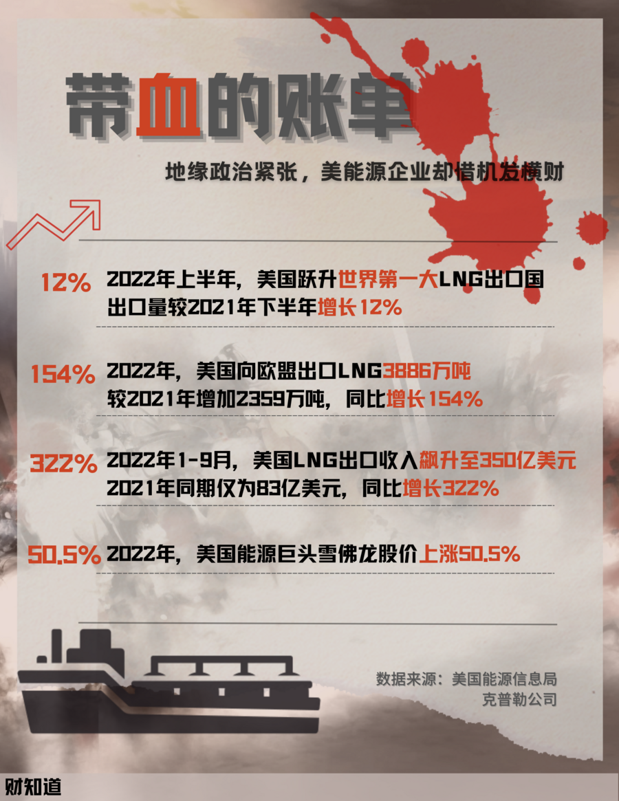 事实上,美国紧盯欧洲天然气需求早已有迹可循。去年3月,美国为欧洲盟友限制俄油气进口主动“打气”,承诺当年将向欧盟增加至少150亿立方米液化天然气出口。
