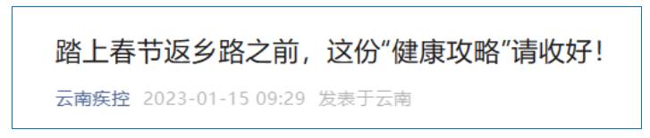1月15日,“云南疾控”微信公众号发布春节返乡“健康攻略”。