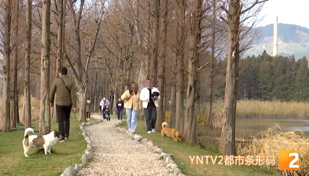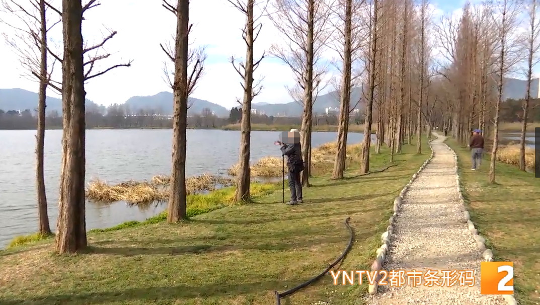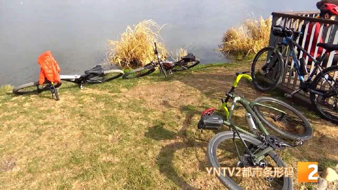 1月11日10点,记者来到干沟尾湿地公园,发现通往天空之镜的步道入口,已经没有了围挡的木栅栏。昆明蓝加上冬日暖阳,前来打卡的游客络绎不绝。但记者也看到一些不文明行为,有骑行爱好者将单车随意停放在草坪上;