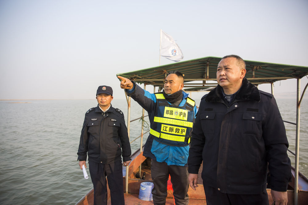 半个多小时后,他们重新上船,继续向湖中心驶去。靠近江豚保护区时,占柏山示意减慢船速。他说:“这一带江豚多,有不少还是从其他水域迁过来的。”