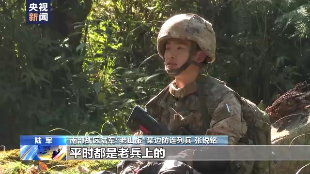 南部战区陆军“老山旅”某边防连列兵 张锐铭:能参加这条线路巡逻的战士,都是连队体能拔尖的同志,平时都是老兵上的。很荣幸这次我能参加,因为这是对我的一种认可,更是一种勉励,我对后面的路程越来越期待了。