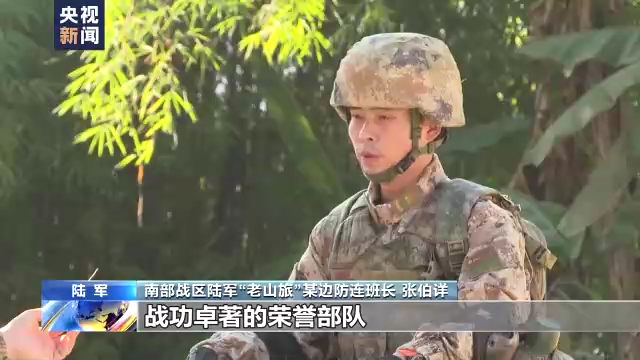 南部战区陆军“老山旅”某边防连班长 张伯详:我们“老山旅”历来是一支战功卓著的荣誉部队,在上世纪我们就叫响了“一人辛苦万人甜、一家不圆万家圆”。到现在条件好了,我们更应该把它传承好,虽然我们跟家人聚少离多,但是看到全国人民他们团圆了,他们幸福了,那么我们也就心满意足了。