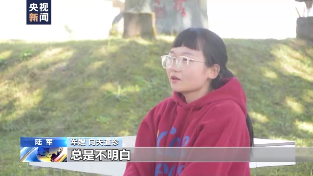 军嫂 向天道珍:我以前从来没有来过连队,总是不明白他为什么不能及时回消息。当我转了五趟车,坐了十几小时车看到他,我就懂了,也请他放心,我会在后方全力以赴支持他,竭尽所能照顾好我们的小家。