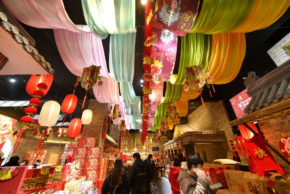 1月12日,顾客在河北省唐山市丰润区2023“非遗”年货节上游览选购。新华社记者 牟宇 /摄