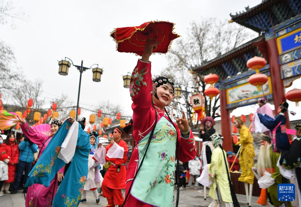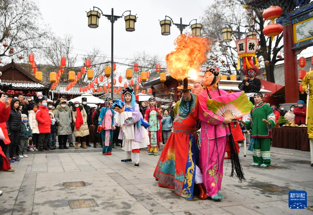 1月14日,演员在西安市永兴坊景区表演传统社火。新华社记者张博文/摄
