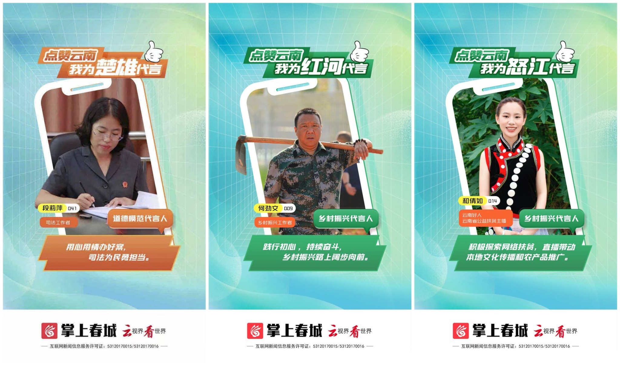 “点赞云南·我为昆明代言”手机形象网络征集活动全面升级,立足昆明市,辐射云南16个州市,规模进一步扩大,同步发起“点赞云南·我为家乡代言”手机形象网络征集活动,更多人物及故事被挖掘报道,让城市正能量在全省传播。活动通过网络投票、评审团审议,选出云南省年度代言人15名,评选出昆明年度代言人12名,各州市也相应评选出年度代言人。“点赞云南·我为昆明代言”手机形象网络征集活动于今年4月28日全面启动以来,社会各界反响热烈,累计160万人次参与到投票中,页面累计访问次数超200万人次,单人最高得票突破3万,活动全网访问量逾3000万人次,展示代言人185位,深度采访报道代言人52位。通过报道来自各行各业、不同岗位的代言人故事讲好春城故事,传播昆明声音。