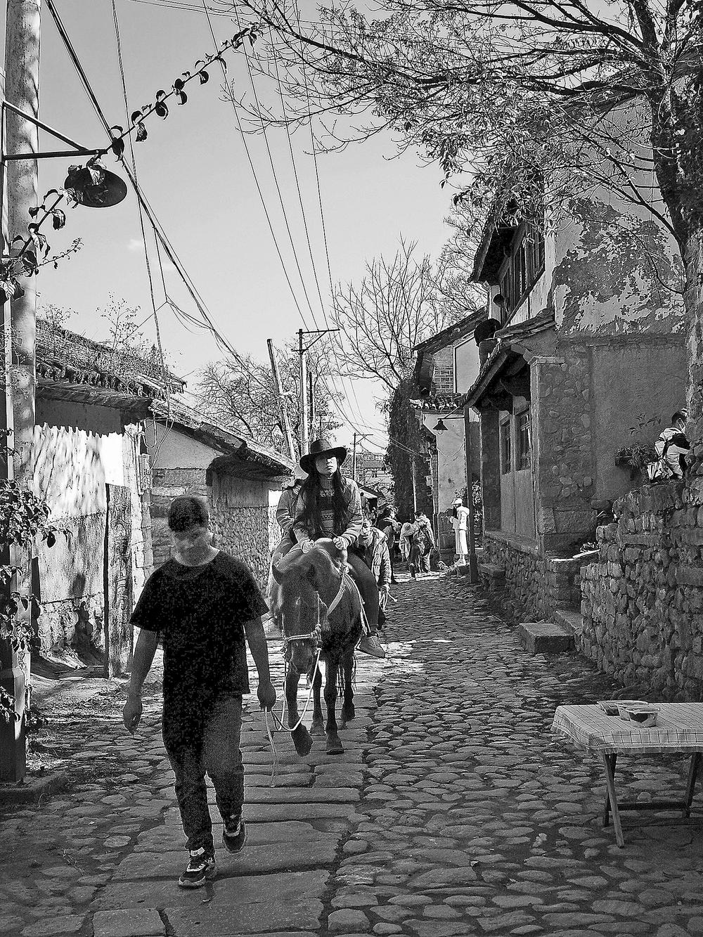 骑着马在大理古村里溜达 本报记者 秦蒙琳 实习生 施建婷 摄