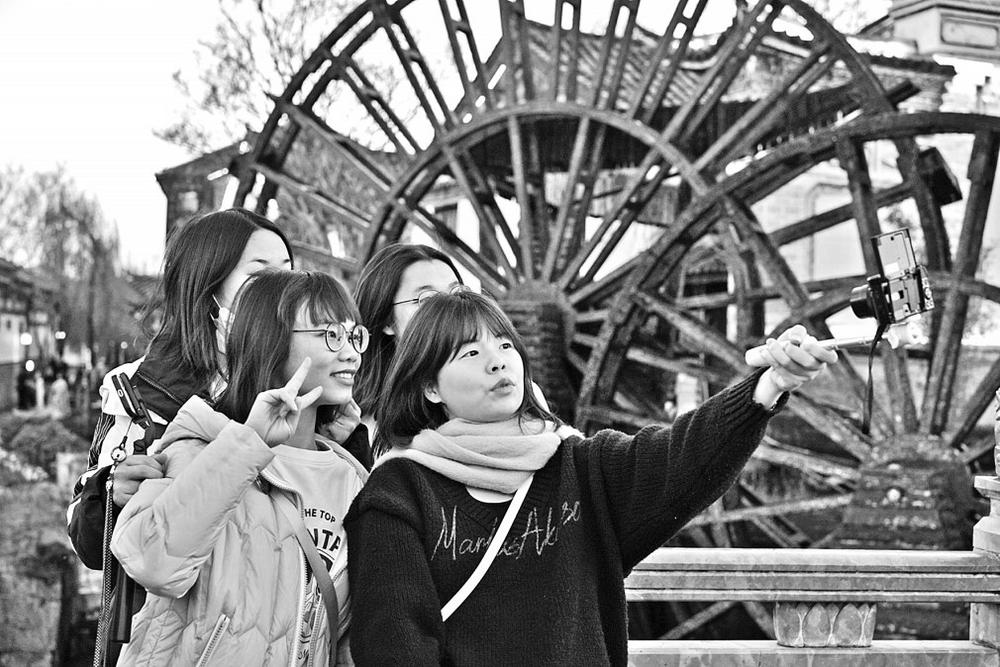 游客在丽江古城合影留念 本报记者 李文诗 摄