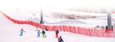 上午9点半,长白山鲁能胜地旅游度假区,滑雪教练尹延平麻利地戴雪具,拿雪板,乘缆车,来到中级雪道顶端。山坡蜿蜒间,红色挂网隔开了雪道。初级雪道上,不时有人摔倒,大家互相搀扶,一片欢声笑语。中级雪道上,滑雪爱好者们回转、跳跃,扬起阵阵雪花。