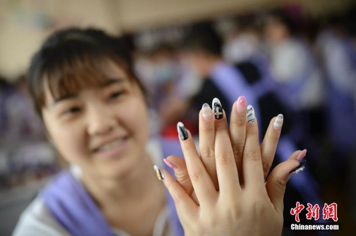资料图:学生展示美甲成品。 中新社记者 刘文华 摄