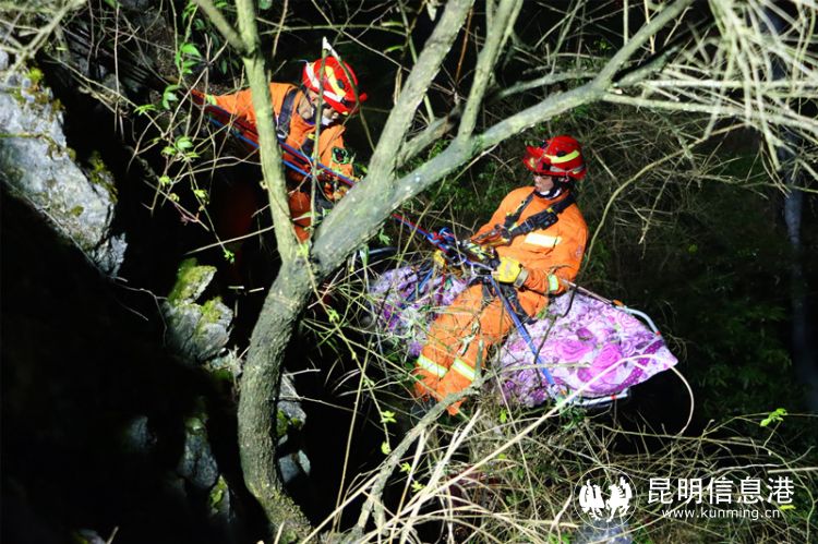 昆明信息港 记者劳学丽 通讯员 魏锐 “放松放松,没事的,很快就好了。”“马上就送你去医院,没事了!”1月14日,昭通市威信县长安镇安稳坝村干河一男子不慎跌入50米左右山崖,昭通市威信县消防救援大队经过79分钟的救援,成功将坠崖男子救上公路并移交现场医护人员。