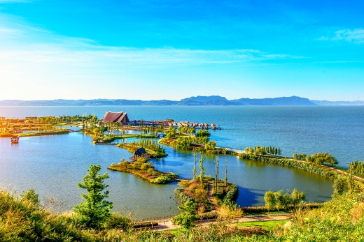 冬日里,云南省昆明市宝丰半岛湿地公园草木葱茏,美景如画。(王正鹏 王颖)