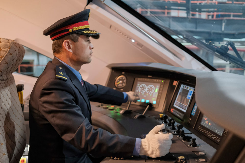 在拉萨机辆整备中心,黄起岗将动车组驶入停车位置(1月11日摄)。