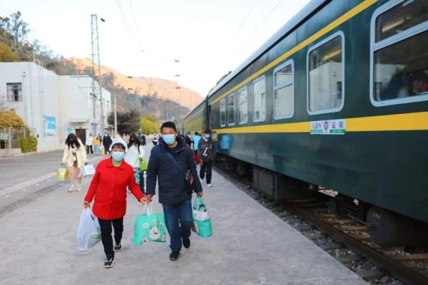 1月15日,云南楚雄彝族自治州,当昆明开往元谋西的7466次“慢火车”抵达龙骨甸站时,站台上已有大批老乡等待上车。
