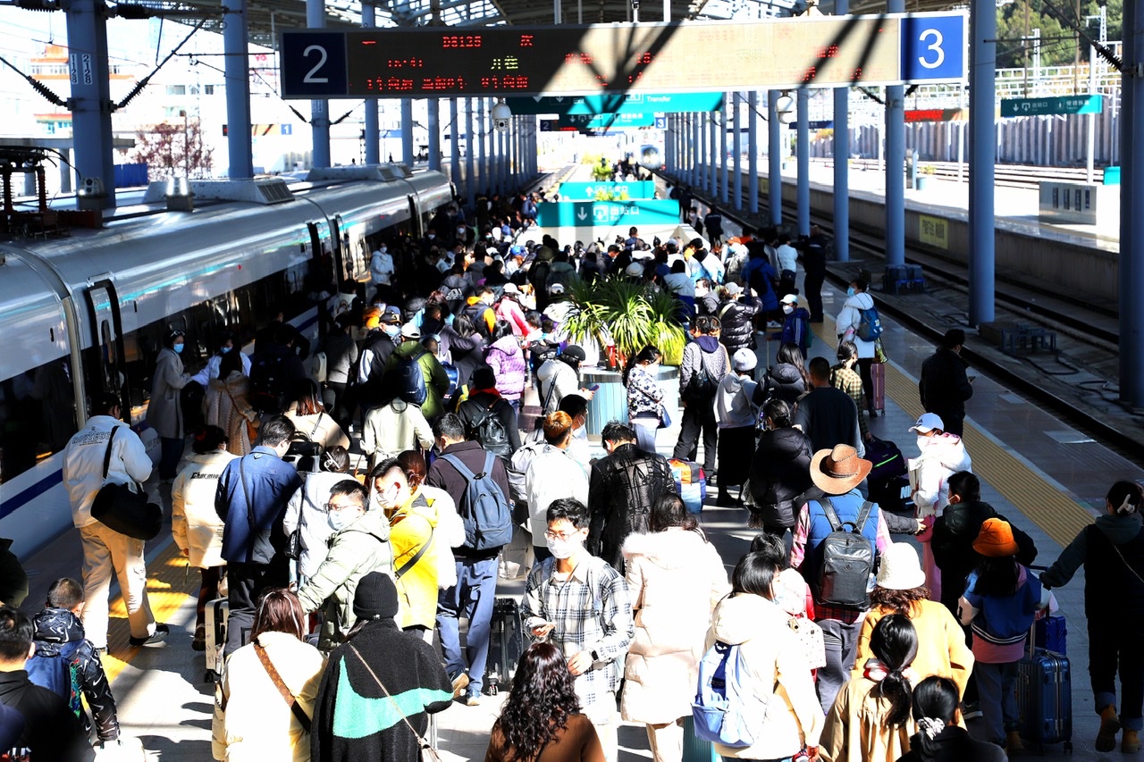 随着云南各地旅游业的复苏,以及大瑞铁路大保段、弥蒙高铁的开通运营,前往大理、丽江、建水、蒙自、河口、弥勒等旅客不断增多。截至目前,昆(明)楚(雄)大(理)丽(江)线发送旅客 32.5万人,大瑞铁路大保段发送旅客12.4万人,弥蒙高铁、昆(明)玉(溪)河(口)铁路累计发送旅客16.7万人。为此,昆明局集团加大运力投入,全力满足旅客出行需求,运能由春运首日的172对增加为205对。