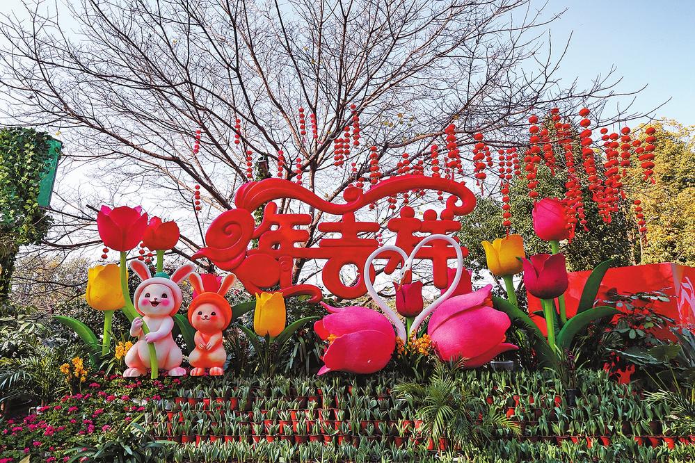 目前,翠湖公园的8万多株郁金香含苞待放,色彩艳丽的花卉植物及景观小品“兔年吉祥”将成为春节拍照的打卡点。“迎新春,买年花”是昆明人延续千百年的浪漫,市民可以在年花展示点买大花蕙兰、仙客来、红掌等花卉。