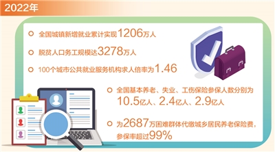 稳就业政策持续发力、服务培训不断助力、创新创业带动就业……在各方努力之下,2022年就业局势保持总体稳定,全国城镇新增就业累计实现1206万人。2023年,随着疫情防控政策优化和稳经济各项举措进一步落实,我国经济继续恢复,就业将继续保持总体稳定。