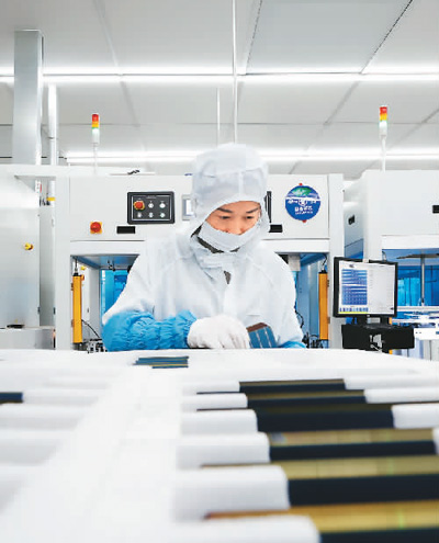 工人在江苏宏润光电科技有限公司生产车间忙碌。许昌亮摄(人民视觉)