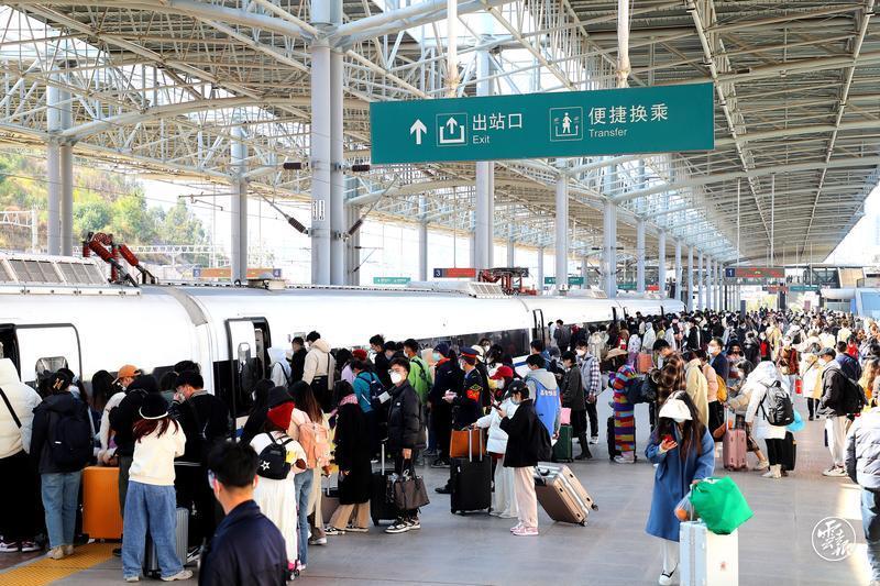 为应对持续攀升的客流,昆明局集团加大运力投入,全力满足旅客出行需求,运能由春运首日的172对增加为205对。